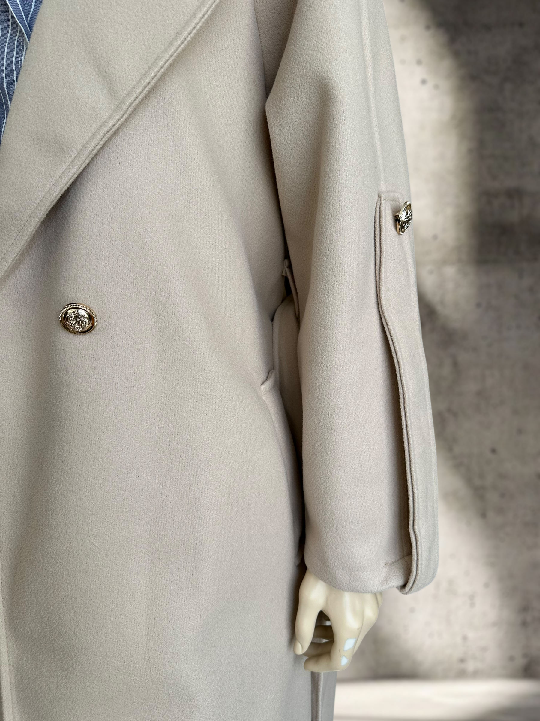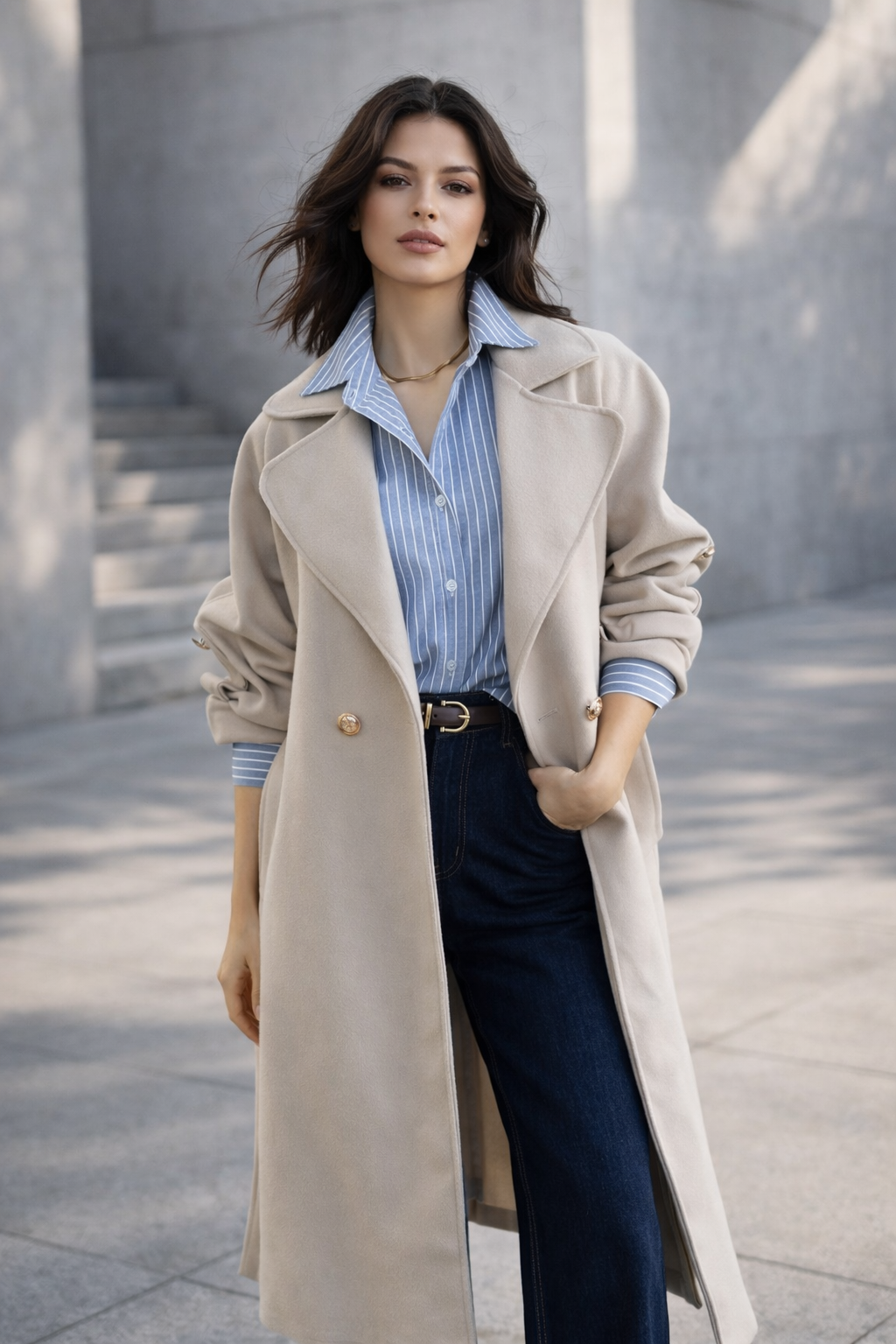Un abrigo elegante y atemporal inspirado en el estilo europeo. Su largo y estructura crean una silueta sofisticada que eleva cualquier look de temporada. Ideal para combinar con denim, camisas o looks más formales.