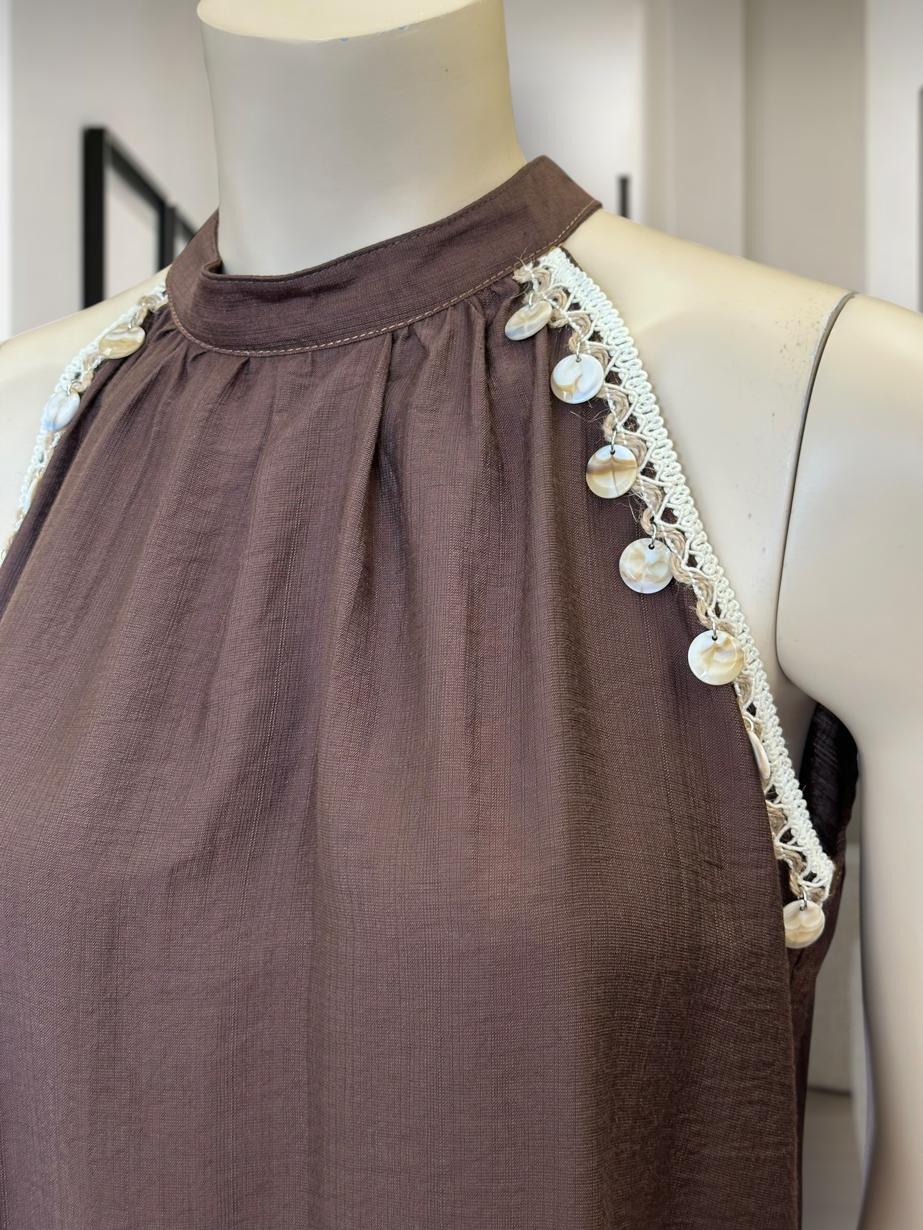 Una prenda fresca, femenina y con un toque boho chic. La Blusa Halter Riviera destaca por su caída suave y liviana, junto a un delicado detalle en los tirantes que realzan el diseño y aportan un acabado único.
