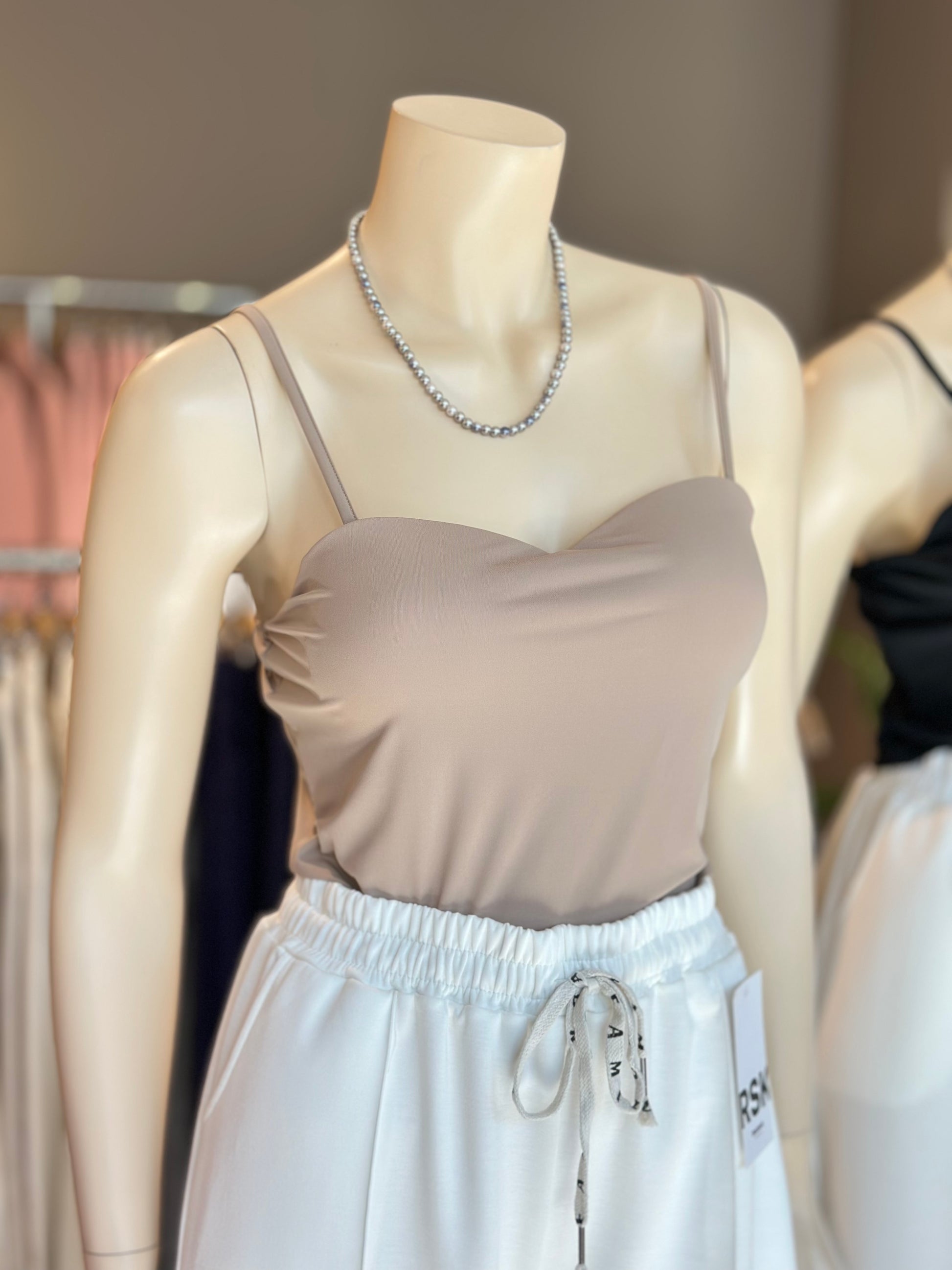 Un básico infaltable para tu clóset. Este bralette está confeccionado en lycra fría, un material suave, fresco y con excelente caída, que además incluye sostén interior para mayor comodidad y soporte.