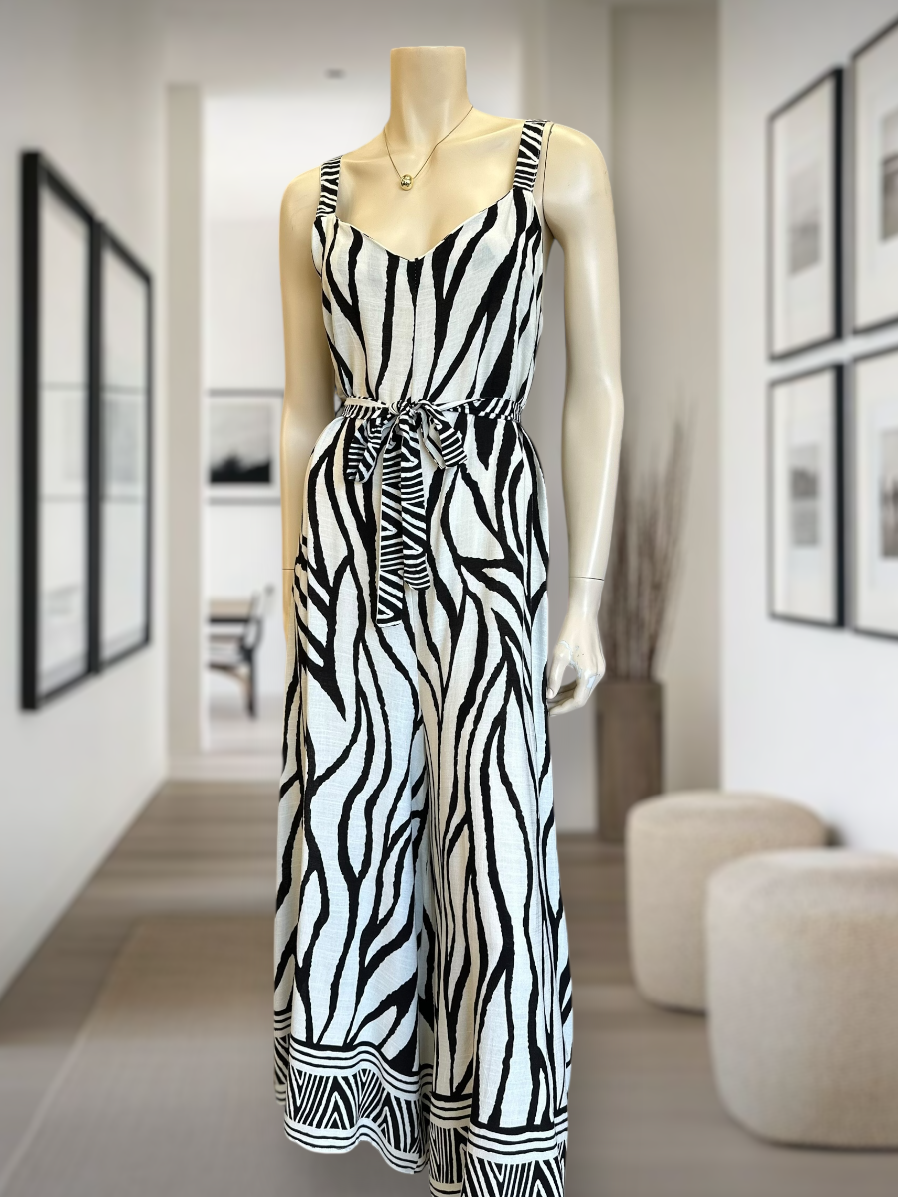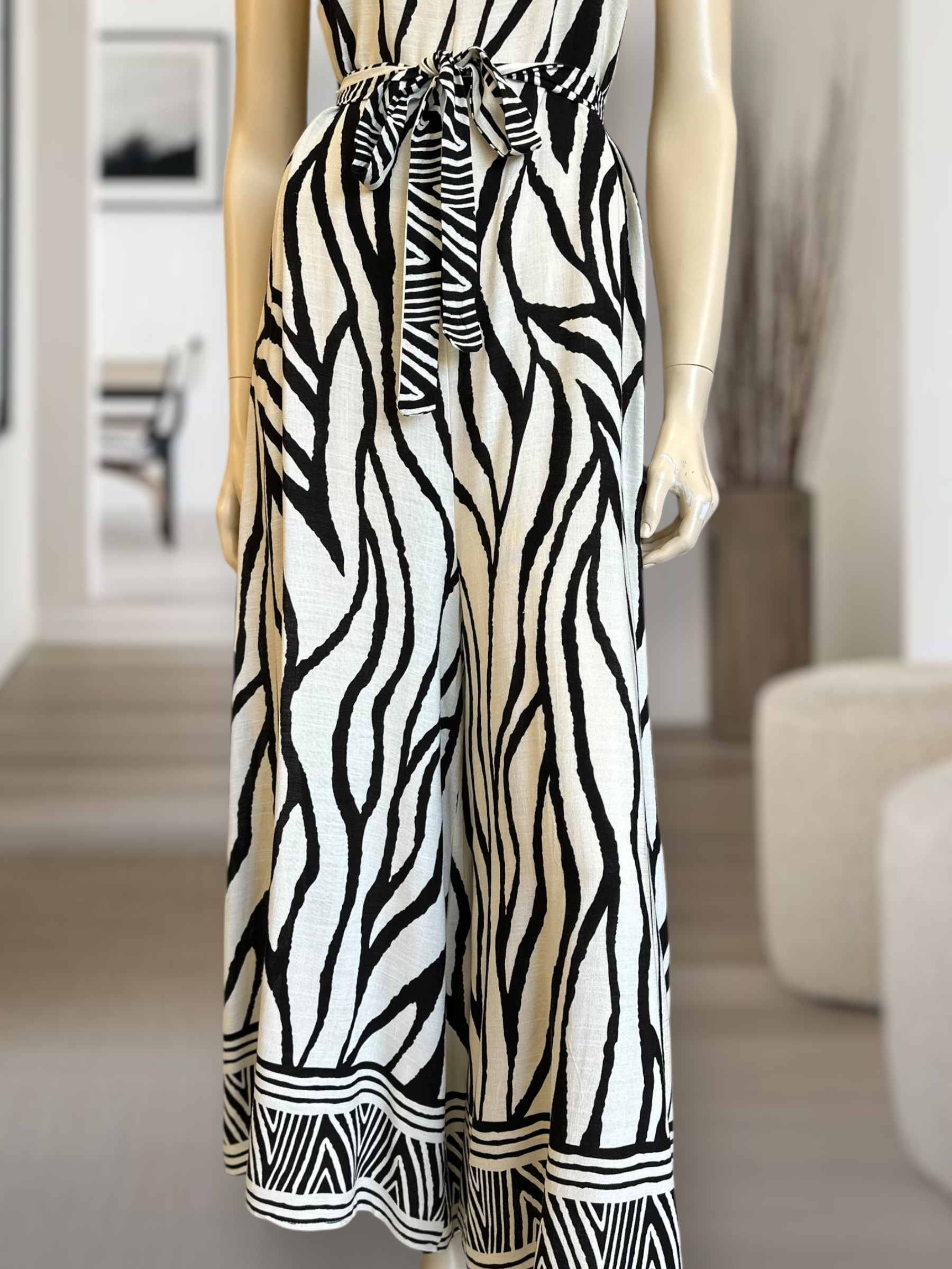 Estilo, frescura y un toque salvaje. Enterito con estampado inspirado en África, tirantes ajustables y lazo en la cintura para un calce cómodo y favorecedor. Perfecto para días soleados o salidas casuales con estilo.