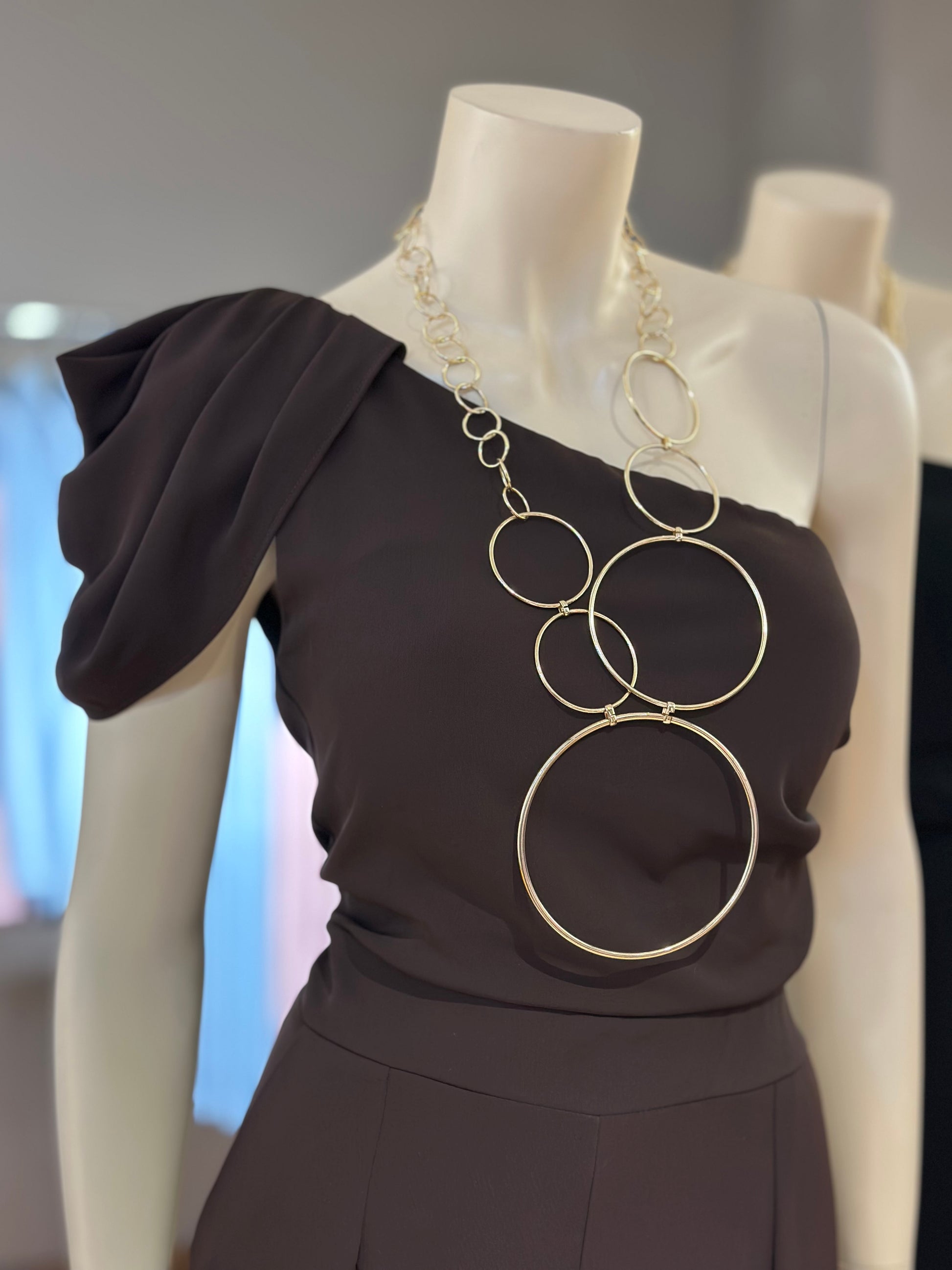 - Diseño asimétrico de un hombro.