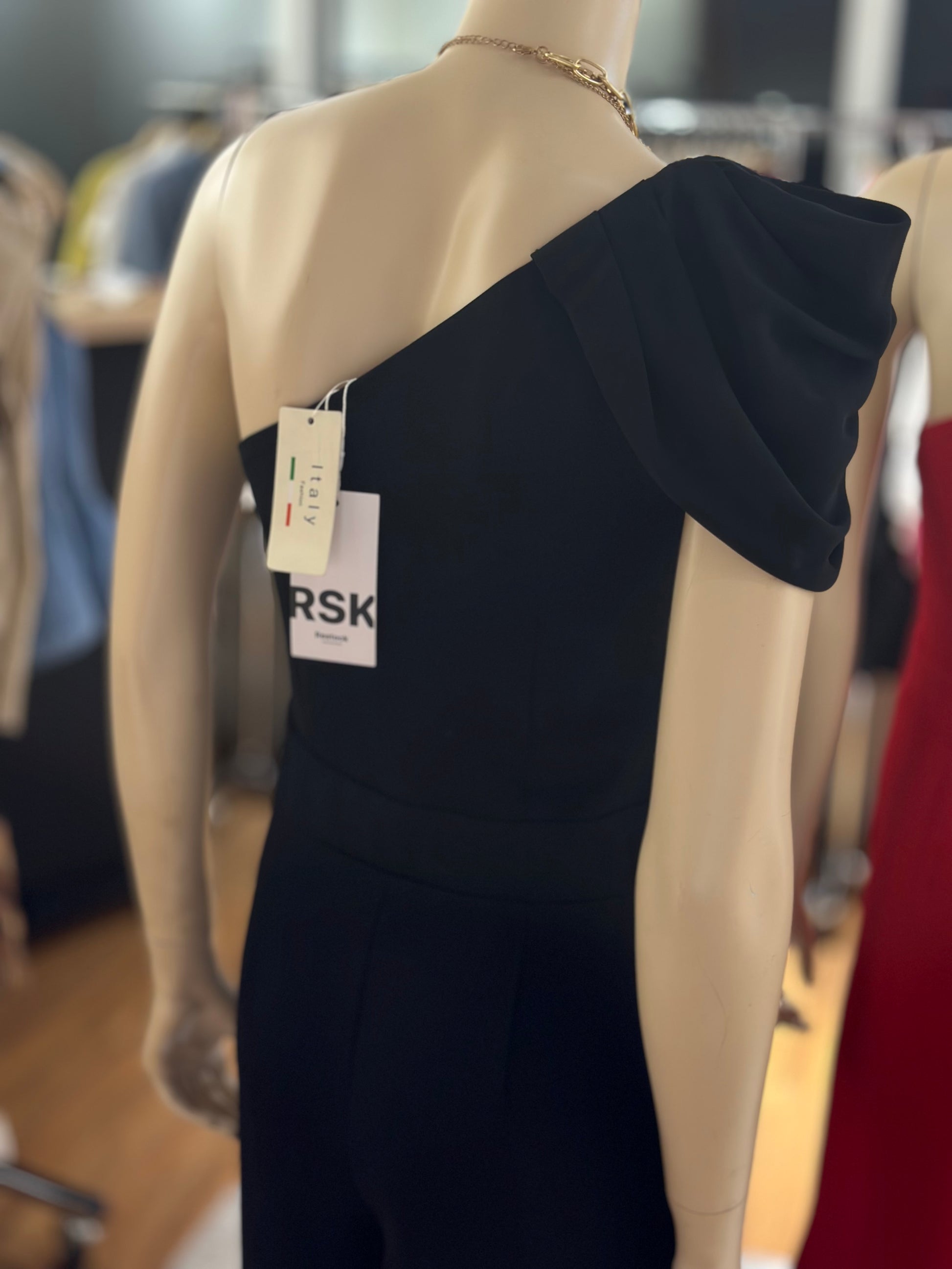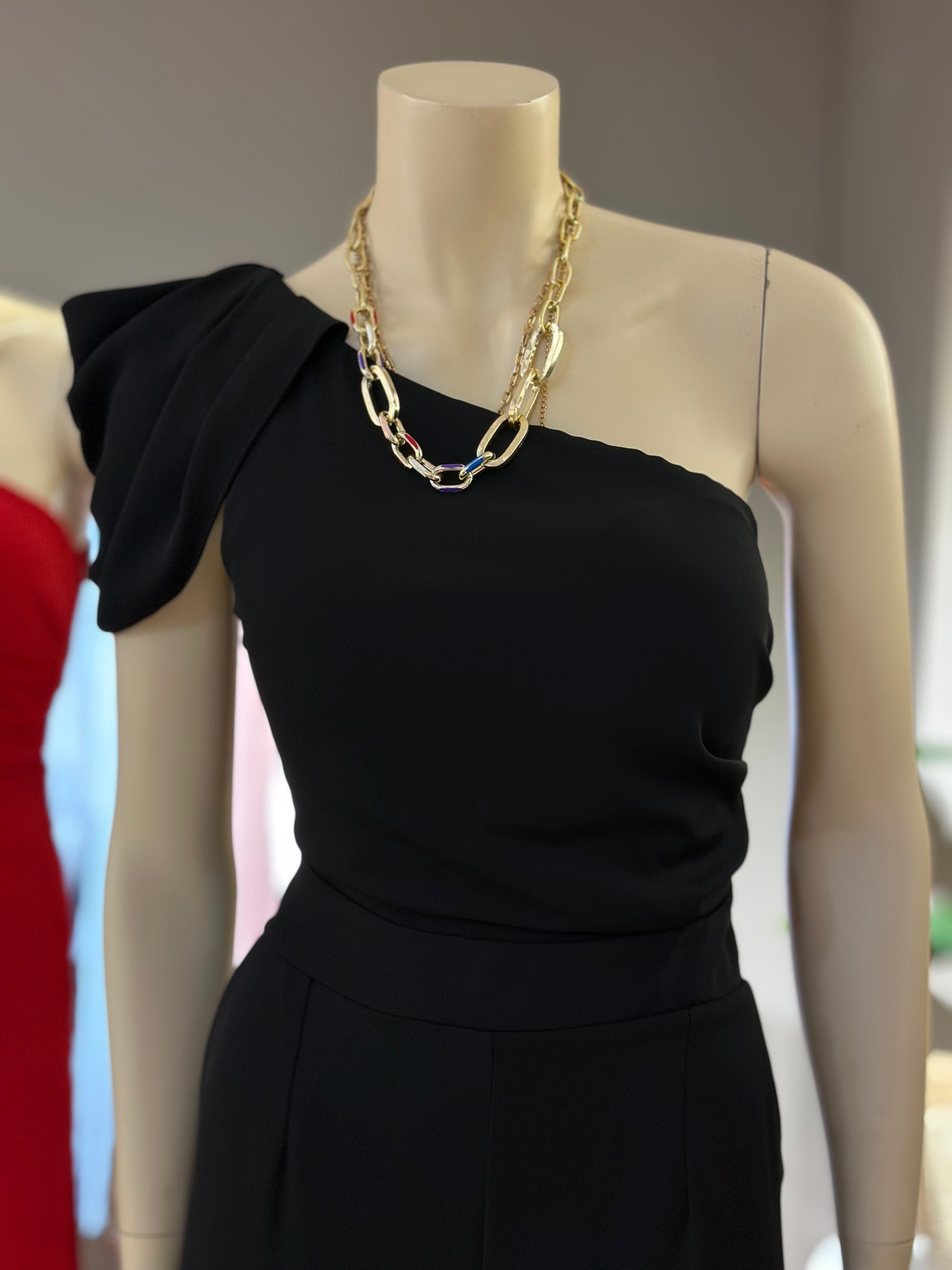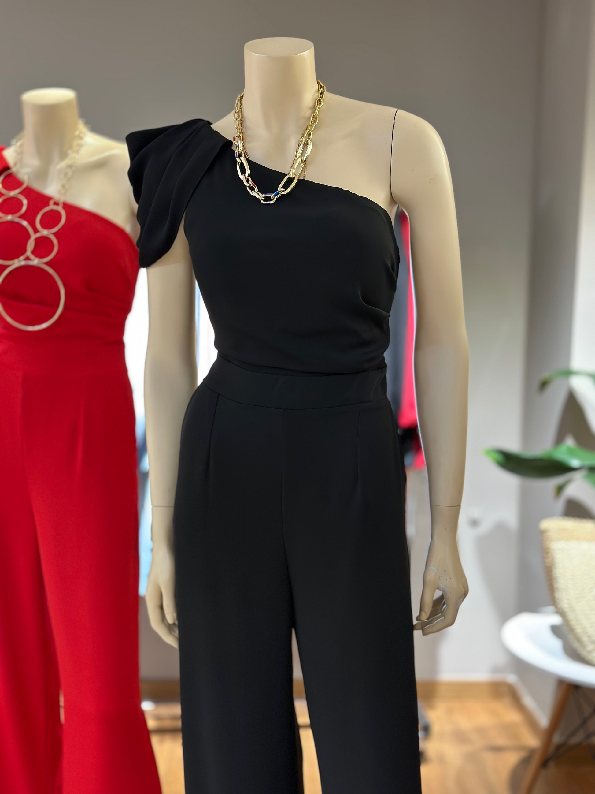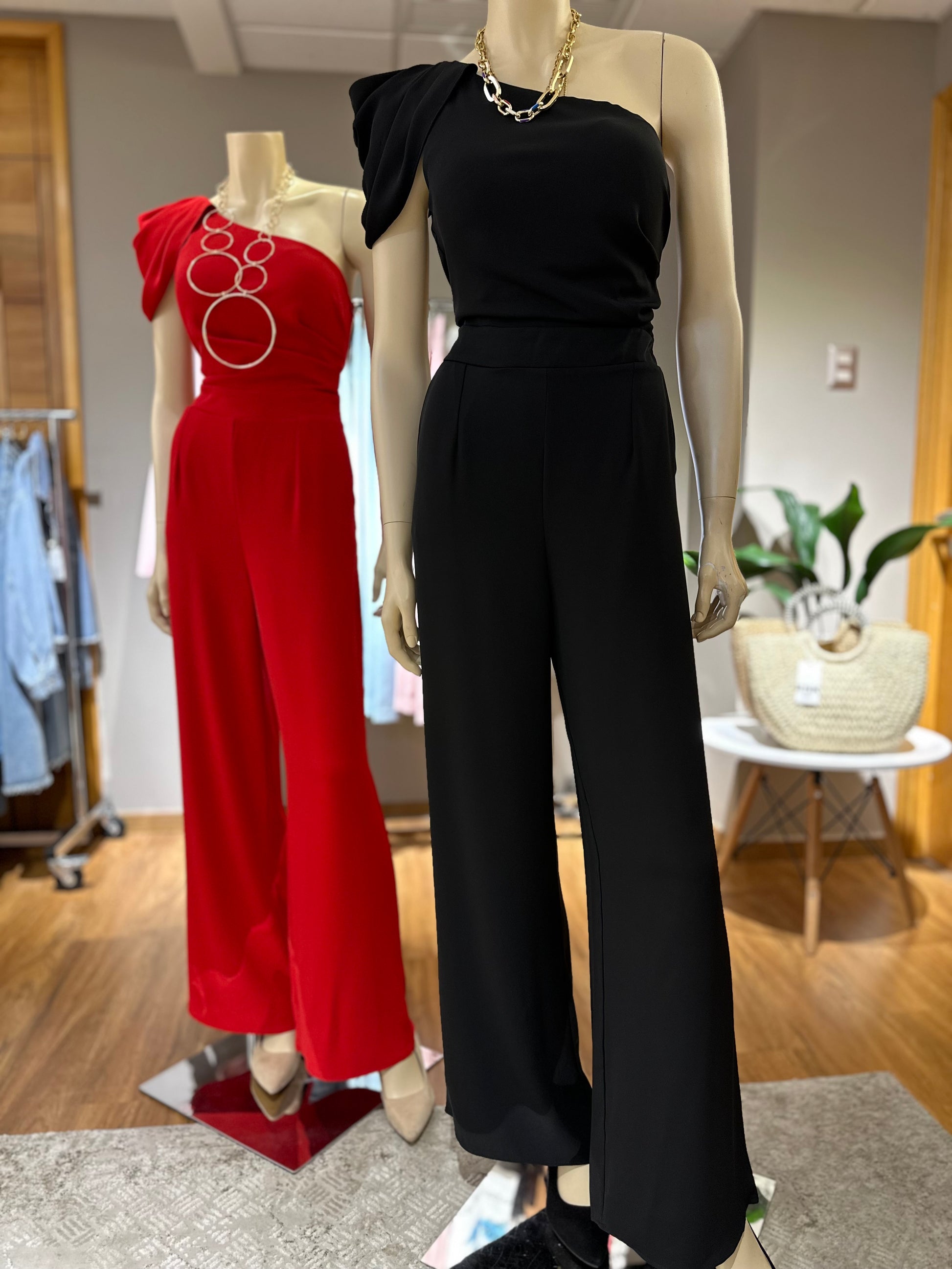 Un diseño sofisticado que combina elegancia y comodidad. Con corte asimétrico de un hombro y pierna ancha, este enterito es ideal para matrimonios, cenas y celebraciones donde quieras destacar con un look refinado y moderno.