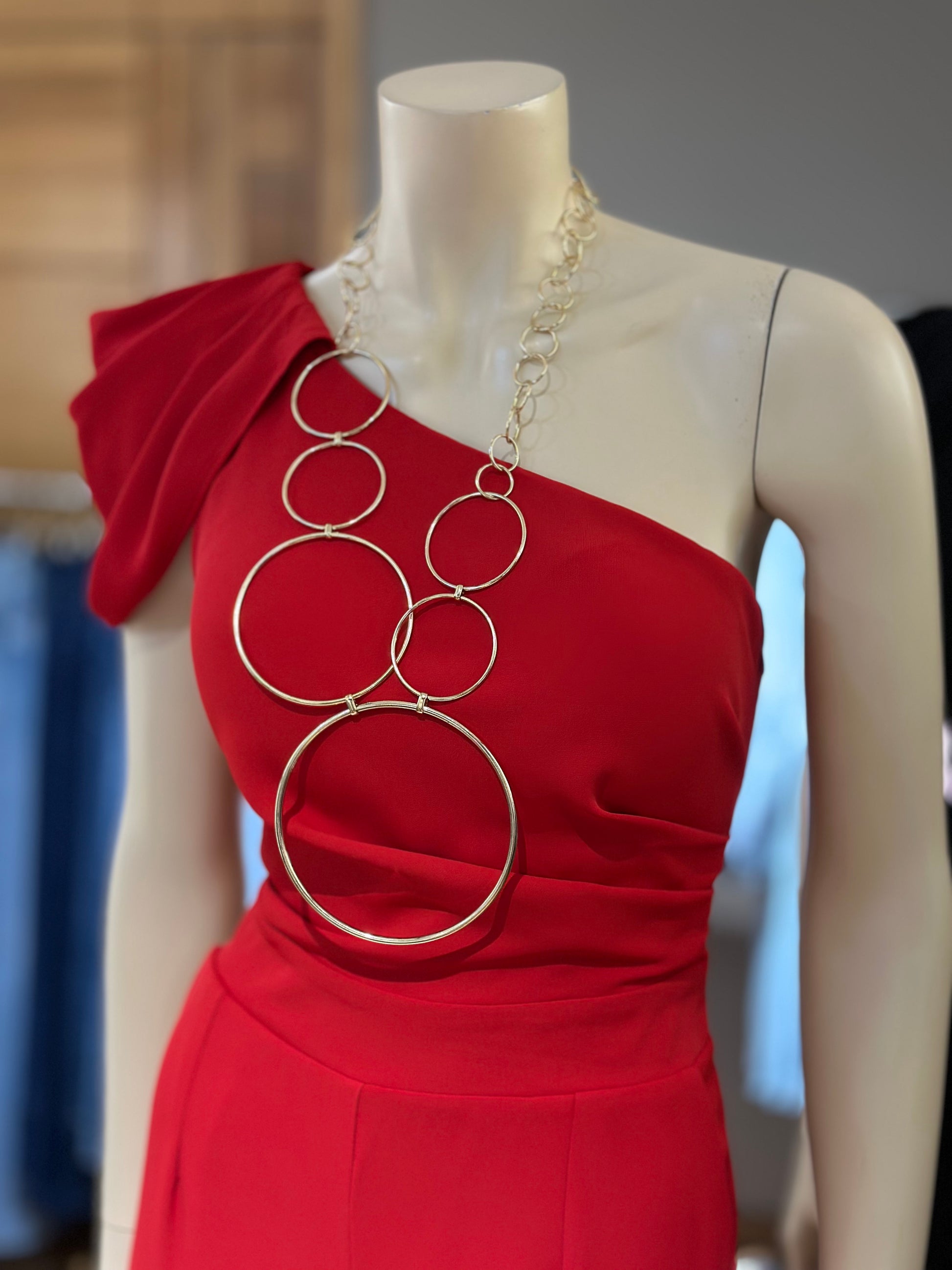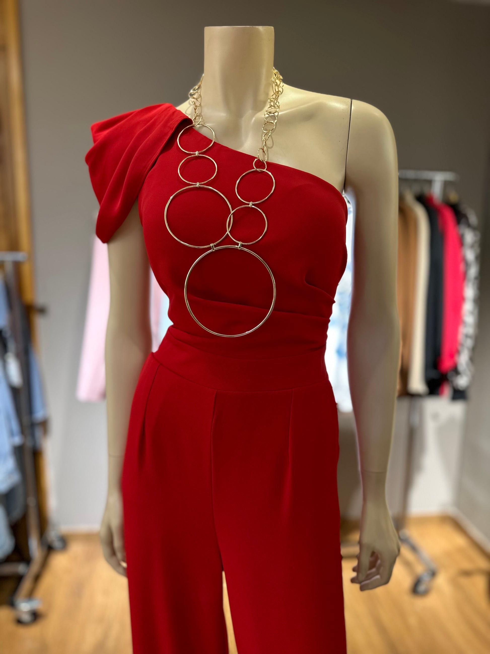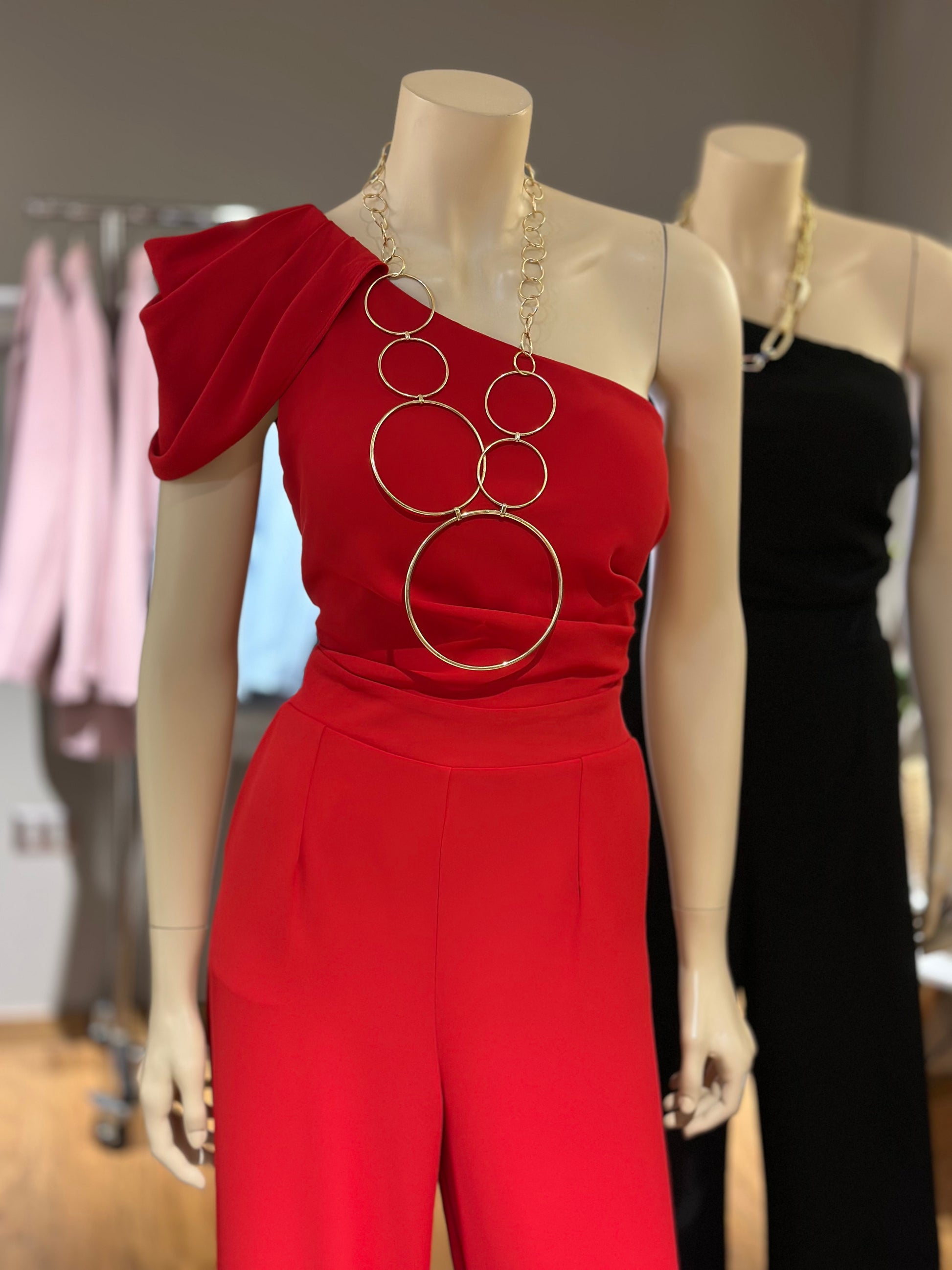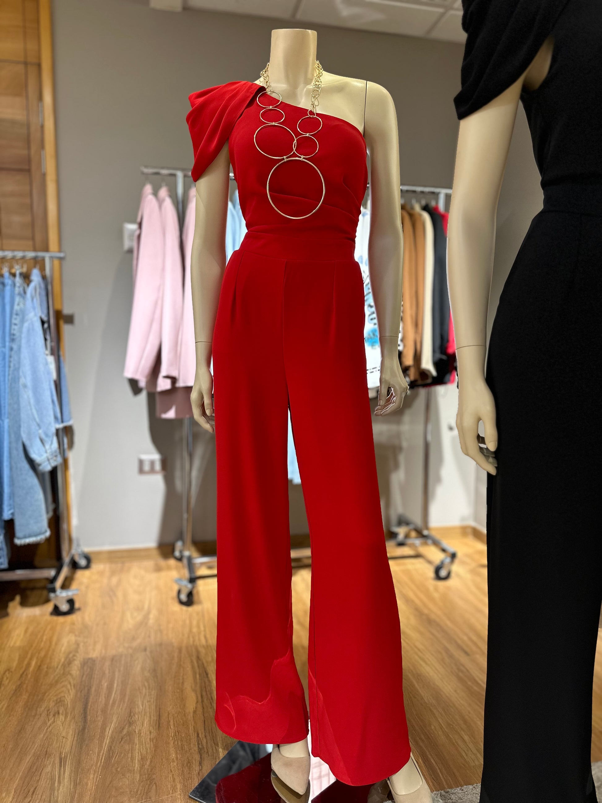Un diseño sofisticado que combina elegancia y comodidad. Con corte asimétrico de un hombro y pierna ancha, este enterito es ideal para matrimonios, cenas y celebraciones donde quieras destacar con un look refinado y moderno.