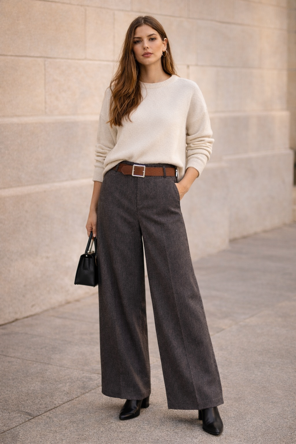 Un básico elevado que estiliza y fluye con cada paso. Su calce amplio y tiro alto crean una silueta elegante sin esfuerzo, ideal para looks pulidos de día o noche.