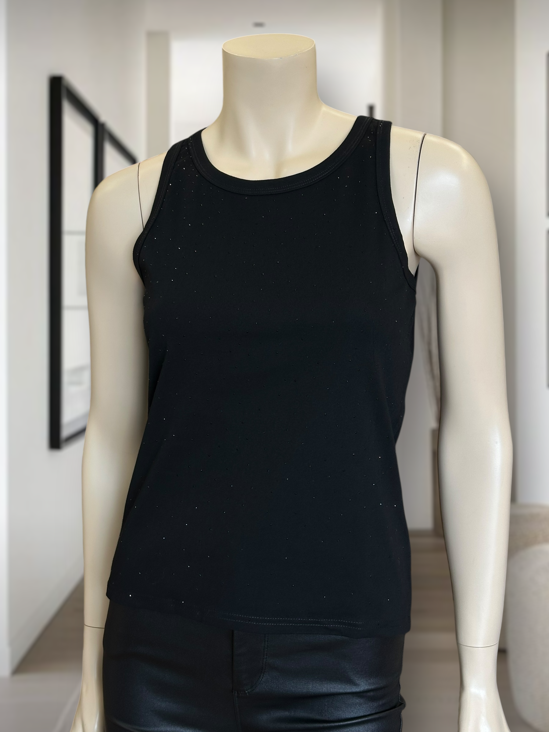 Una polera básica elevada con el toque perfecto de brillo. Su diseño recto y elasticado ofrece comodidad y calce natural, mientras los cristales frontales agregan un acabado delicado y femenino. Ideal para looks casuales, chic o para darle un toque luminoso a cualquier outfit.