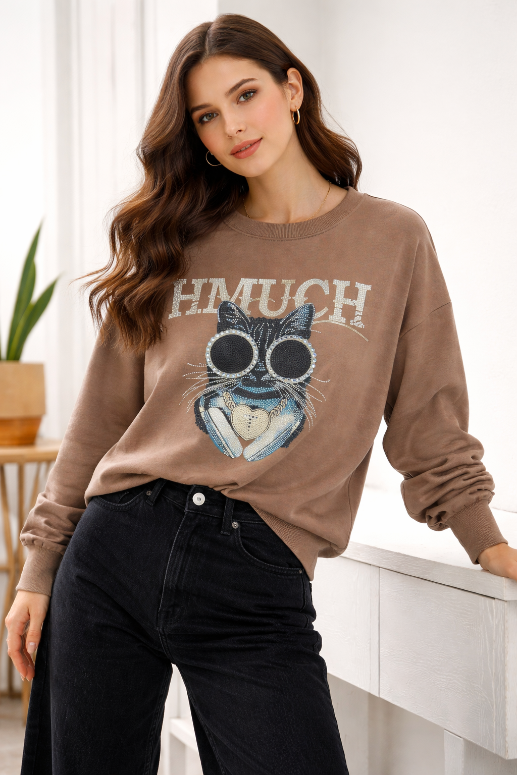 - Estampado frontal con aplicaciones brillantes