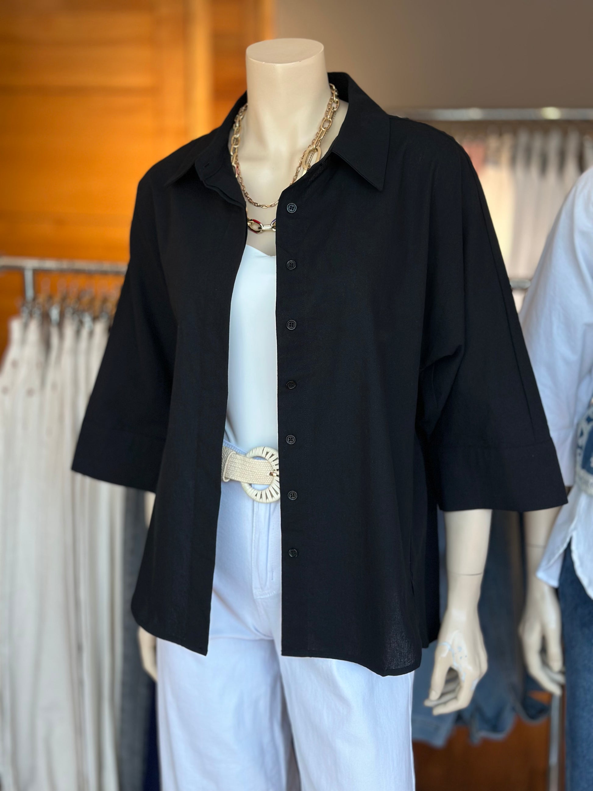 Una prenda fresca y versátil para usar en cualquier ocasión. Confeccionada en mezcla ligera estilo lino, de caída suave y cómoda.