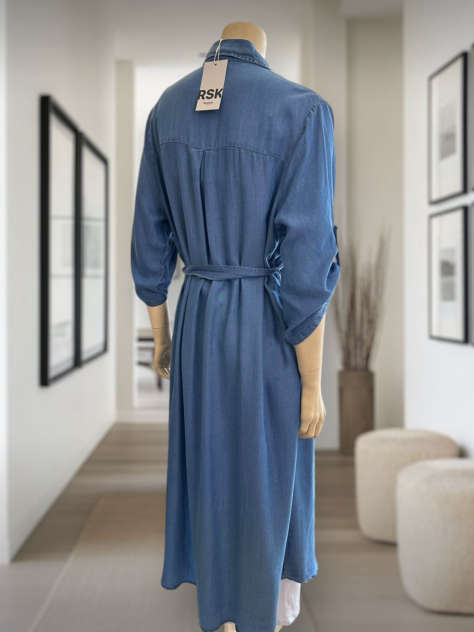 Suave, fluido y muy versátil. Vestido camisero en tencel (lyocell) con botones frontales y lazo ajustable a la cintura. Mangas con tirilla para usar arremangadas y bolsillos de pecho. Úsalo cerrado como vestido o abierto como sobrecamisa con jeans o palazzo.
