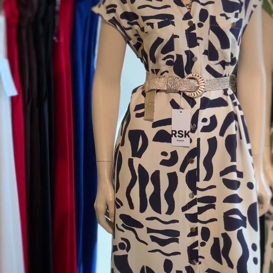 Un diseño fresco y moderno con estampado abstracto que aporta personalidad y estilo. Su corte recto con botones delanteros y bolsillos lo hacen cómodo y versátil para el día a día.